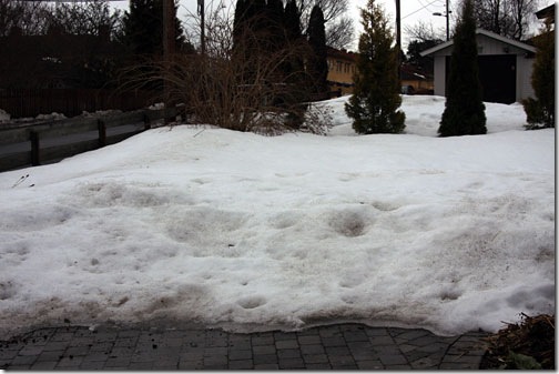 Og dette, ja det er et godt eksempel på hvordan det ser ut i resten av hagen. Her er veibedet og steinbedet godt begravd under nesten en meter med snø. Tar nok ennå en stund før de dukker frem.
