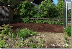 Denne hagen er tilrettelagt for rullestolbruker og har opphøyde bed. Her har man prøvd å benytte mer runde former og lettstelte planter.